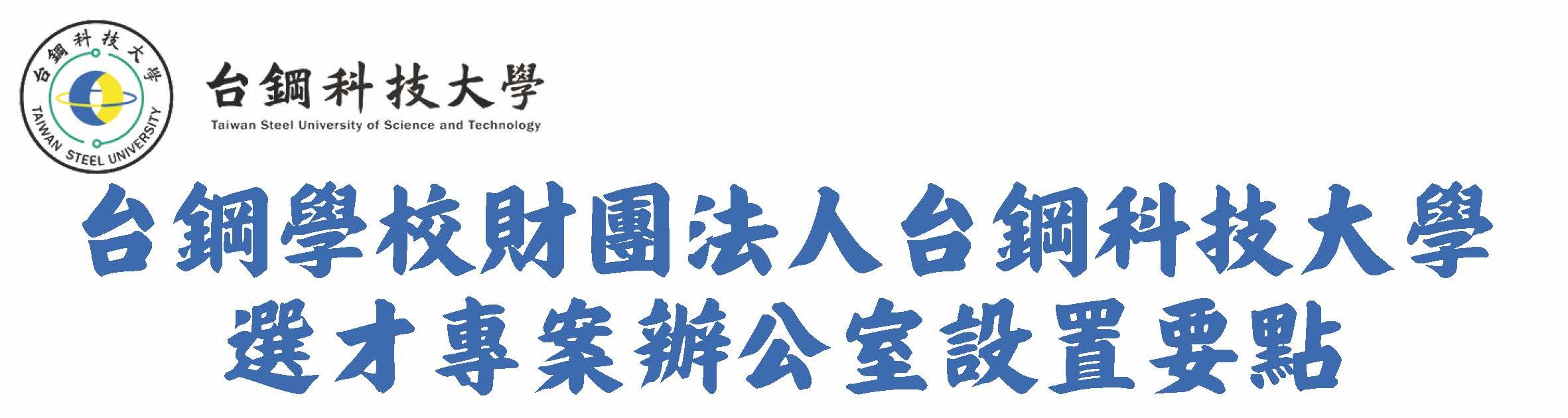 一、台鋼學校財團法人台鋼科技大學(以下簡稱本校)為因應108學年度實施之十二年國民基本教育技術型高級中學群科課程綱要,依特色訂定招生條件並配合招生方式多元化,與落實學生學習本位及適性揚才之教育目標,以精進招生作業效能並建立招生專業化發展,特設置「台鋼學校財團法人台鋼科技大學選才專案辦公室」(以下簡稱本辦公室),並訂定「台鋼學校財團法人台鋼科技大學選才專案辦公室設置要點」(以下簡稱本要點)。