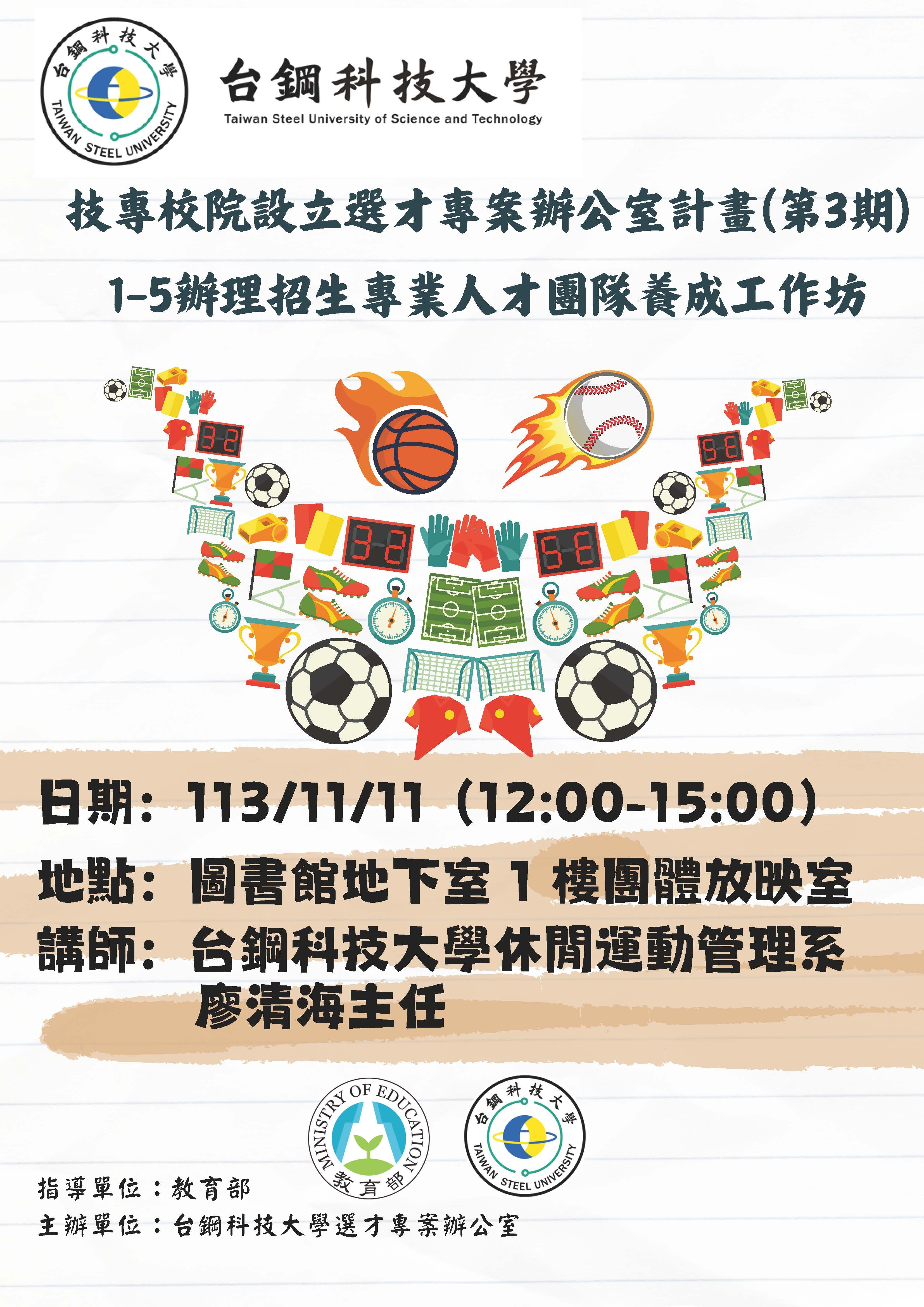 ● 113/11/11 活動14-自辦培訓活動【選才專案辦公室】辦理發展與招生專業人才團隊養成工作坊
