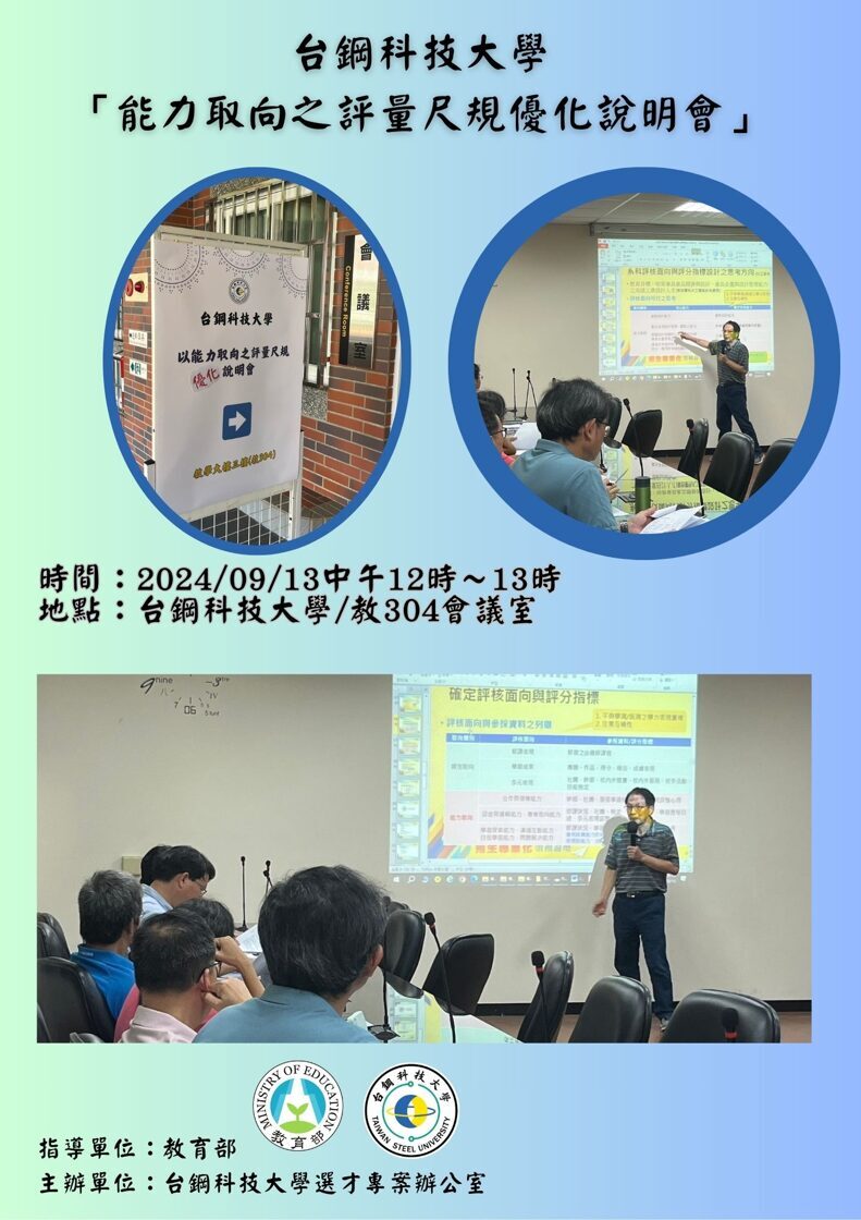 ● 113/09/13 活動12-自辦培訓活動【選才專案辦公室】能力取向之評量尺規優化說明會