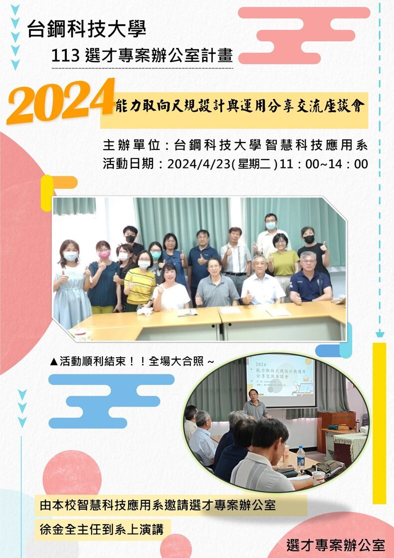 ● 113/04/23 活動2-自辦培訓活動【智慧科技應用系】能力取向尺規設計與運用分享交流座談會