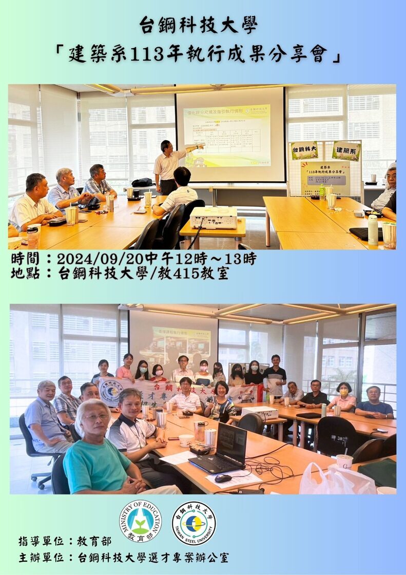● 113/09/20 活動13-自辦培訓活動【建築系】113年執行成果分享會