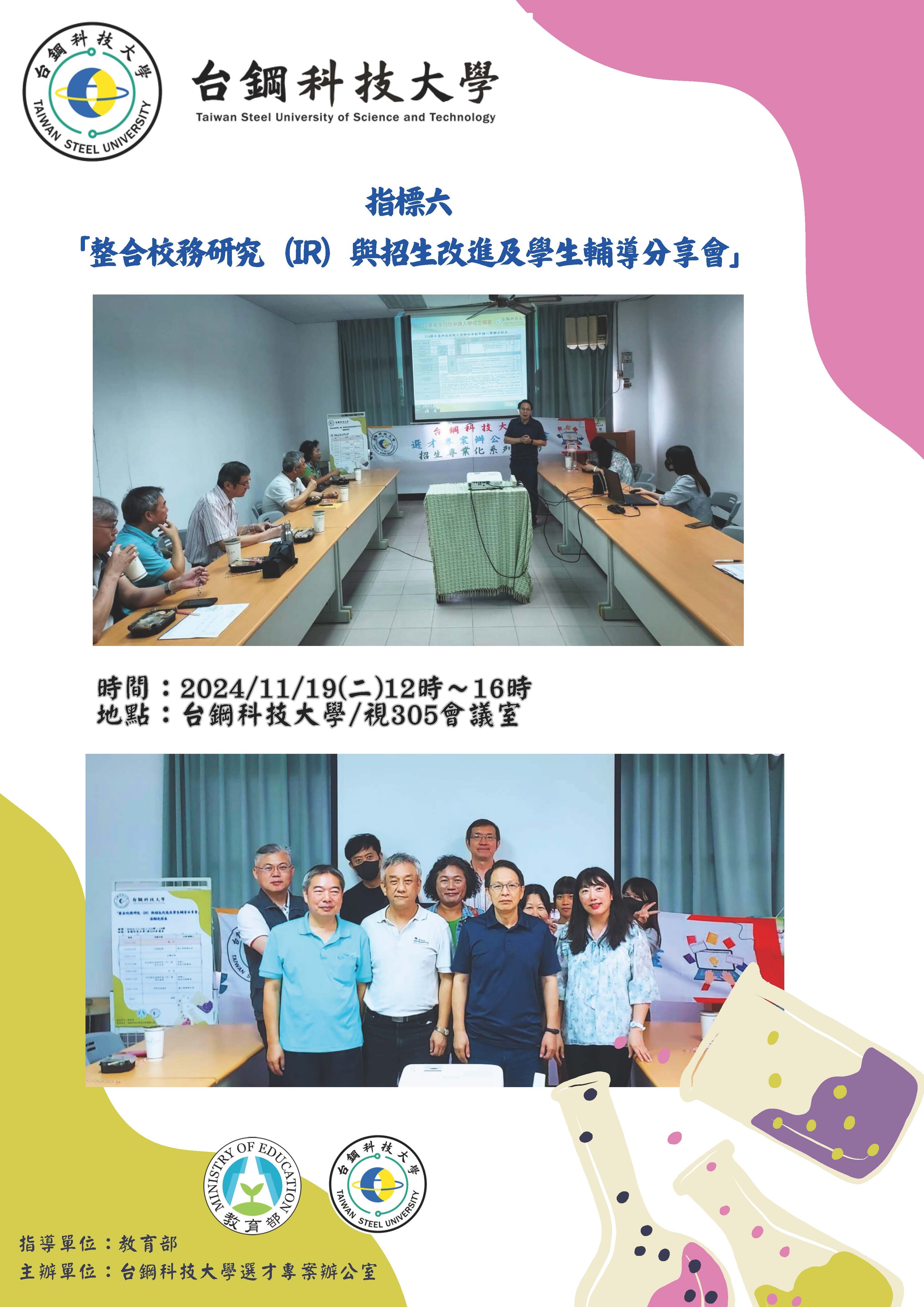 ● 113/11/19 活動17-自辦培訓活動【選才專案辦公室】「整合校務研究(IR)與招生改進及學生輔導分享會
