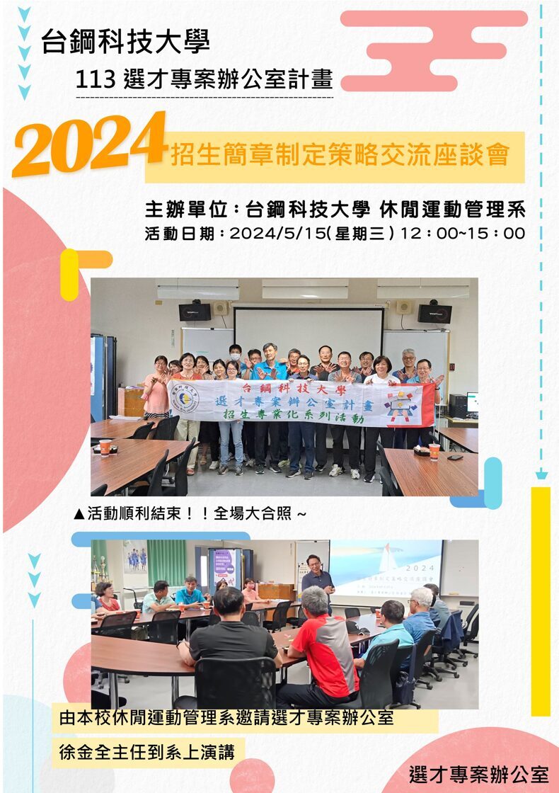 ●113/05/15 活動4-自辦培訓活動【休閒運動管理系】招生簡章制定策略交流座談會